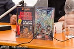 Il secondo incontro della mattinata è stato la presentazione dell’albo Martin Mystere: Le uova quadre, albetto speciale del Detective dell’Impossibile realizzato dall’associazione Amys in collaborazione con Rapalloonia. Particolarità dell’albo l’aver mischiato il mondo Bonelli con quello Disney. E non poteva essere altrimenti con uno sceneggiatore quale Carlo Chendi, colonna del fumetto Disney italiano. Alle matite il bravo Nicola Rubin. Insieme a loro, sul palco anche Daniele Busnelli di Amys insieme al disegnatore Giuliano Piccininno e suo figlio Glauco Piccininno, autori della copertina. Copertina composta da un mix tra i disegni di Giuliano Piccininno e sfondi realizzati dal figlio Glauco utilizzando il videogioco Minecraft.