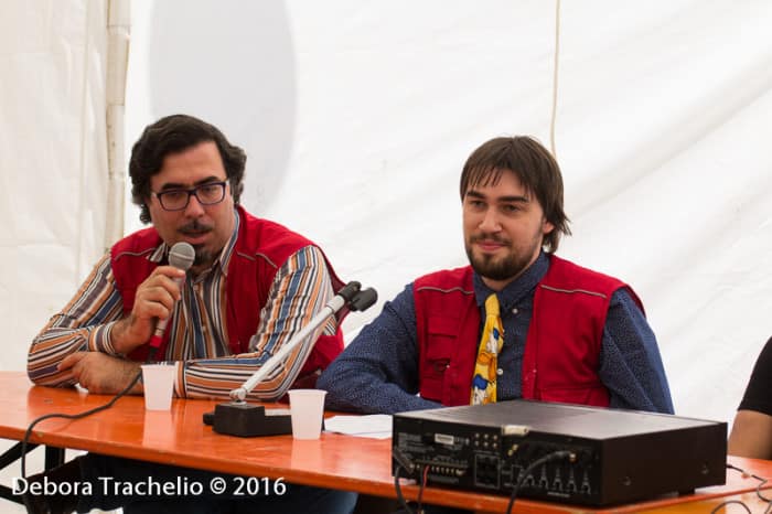 Per quanto riguarda le conferenze, quest’anno si sono svolte in una nuova location. La seconda edizione (la prima che mi ha visto come organizzatore) ci eravamo divisi tra la sala consiliare del comune (ottimo) e una spiaggia (rumoroso). La terza edizione avevamo trovato un’ottima alternativa nell’asilo (ottimo). L’anno successivo, ovvero lo scorso anno, l’asilo all’ultimo minuto è stato reso inagibile e quindi abbiamo dovuto trovare una (pessima) soluzione di emergenza andando a condividere con gli stand la Società. Risultato da dimenticare a causa del rumore insostenibile. Quest’anno abbiamo provato una nuova location: una apposita tensostruttura in piazza Sisto IV. E direi che la cosa ha funzionato. Un pochino di rumore di auto, forse un po’ più grande non avrebbe guastato, ma tutto sommato direi una esperienza da ripetere. Anche l’affluenza del pubblico mi è sembrata molto più costante e continua rispetto agli anni scorsi. Vediamo ora come sono andate le conferenze, una per una, con un breve resoconto in attesa della pubblicazione delle registrazioni video.