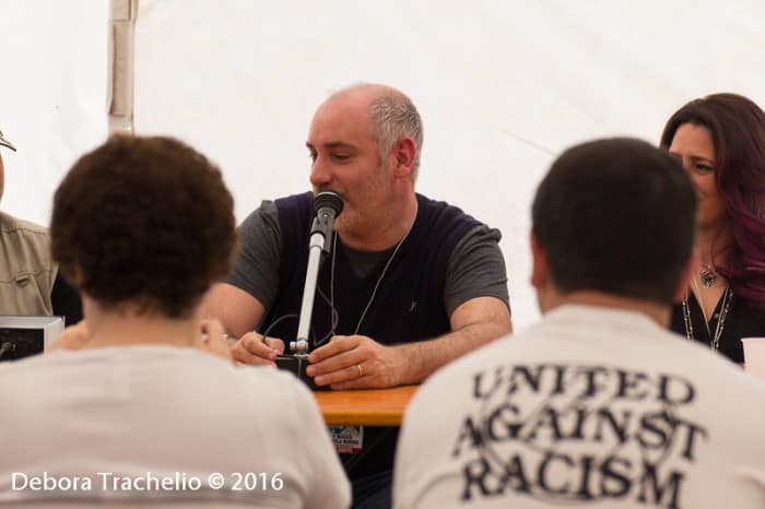 Ad aprire la giornata la conferenza sul fumetto storico in compagnia di Yildirim Orer, Simona Mogavino, Alessio Lapo, Sergio Tisselli. Yildirimi Orer ha raccontato delle differenze tra il mondo del fumetto turco e quello italiano e di come ha “studiato” Carlos Gomez per ricreare gran parte degli ambienti del “suo” Dago. Sergio Tisselli ha espresso il suo grande amore per il fumetto storico e di quanto sia importante la parte di documentazione. Alessio Lapo, che è invece “capitato” a far fumetto storico, senza nascondere la sua passione per altri generi quali la fantascienza, ha raccontato la genesi di fumetti quali Cagliostro. Simona Mogavino ha parlato delle differenze di mercato tra Italia e Francia e ha dato alcune anticipazioni sui lavori che seguiranno Eleonora regina di Francia