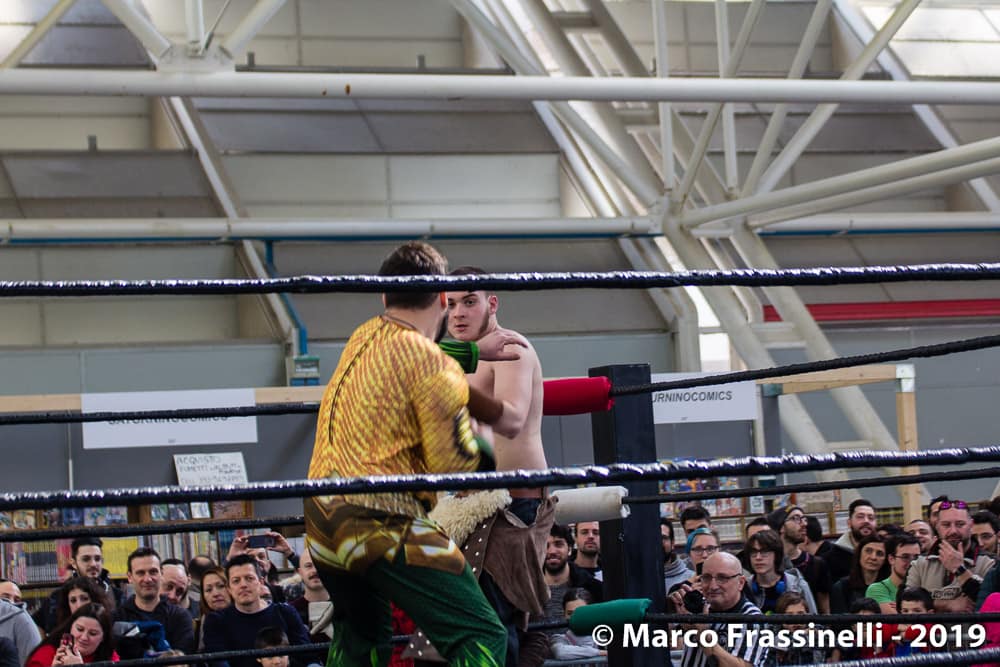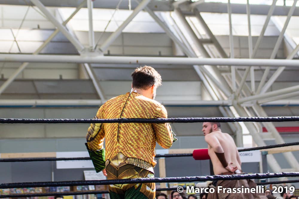 Oltre al fumetto, al Cosplay e all’area game (dove abbondavano giochi da tavolo, videogame, cabinati e mattoncini lego), Bologna Nerd Show 2019 ha puntato molto sul lato “spettacolare” di questo tipo di manifestazioni. Il wresling, ad esempio, è stato uno degli spettacoli di maggior successo capace di attrarre sempre la curiosità di un buon numero di visitatori. Molto originale l’idea di far scontrare tra loro alcuni personaggi dei fumetti con la telecronaca di nientepopodimeno che… Tony Stark!