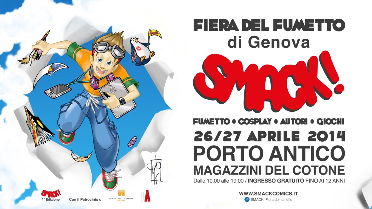 Il 26 e il 27 aprile si svolgerà a Genova la quarta edizione dello Smack!, fiera di fumetti, giochi e cosplay. L’evento di svolgerà dalle 10 alle 19, nei Magazzini del Cotone del Porto Antico del Capoluogo ligure, un’ottima location per poter visitare la kermesse senza preoccuparsi di sole, pioggia o vento.