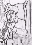 Per me da sempre Dylan Dog ha il volto con la sintesi di Bruno Brindisi. È quello che trovo più bello e proporzionato anche se rimane molto giovane per l’età che sento debba avere. Quindi incominciai a riguardarmi i suoi volti ben bene, con il vantaggio che, avendo la linea chiara, si poteva agevolare ancor di più la resa sul “Color Fest”. Riscontrai però da subito una somiglianza troppo netta e non mi soddisfaceva: non volevo fare la copia di Bruno Brindisi, io Dylan lo sento differente. Mi piace il segno di Brindisi ma volevo un Dylan più vissuto, più maturo. Così abbandonai la documentazione iniziale e cercai foto di Rupert Everett per interpretarlo a mio modo… Niente, lo schema mentale è quello, se pur differente il mio Dylan del “Color Fest” ricordava il Dylan di Bruno. Ovviamente a me fa solo piacere sottolineare da chi presi spunto, ho grande stima per il lavoro di Bruno, ma volevo che emanasse altre emozioni. Allora guardai Giampiero Casertano, differente nello stile, per veder se trovavo soluzioni nuove… niente, ne usciva un ibrido, non sentito… Non pensavo che avrei riscontrato tanta difficoltà a rappresentarlo, nei personaggi che disegno, devo sentirne la vita prima di tutto e se non mi parlano (con i personaggi , ci parlo spesso e mi vivo una loro vita parallela mentre li disegno), non riesco poi a farli muovere nel contesto delle storie… Alla fine, convinta anche dalla destinazione che avrebbero avuto le tavole, cioè a colori e senza neri per dar atmosfera, decisi di arrendermi ed accettare il volto di Dylan preso dalle foto, dove ricordava il Dylan di Bruno. Finita la storia, incominciai però a studiarmi un Dylan che sentivo crescere man mano che lo disegnavo nelle tavole. Per le illustrazioni infatti sto dando un volto che si avvicina maggiormente a come lo sento io, più maturo… ci sto lavorando ancora e sicuramente averlo ripassato con i neri gli dona un’atmosfera maggiore. Insomma, sto iniziando a dar vita a questo personaggio che inizialmente era “silenzioso” anche se graficamente elegante.