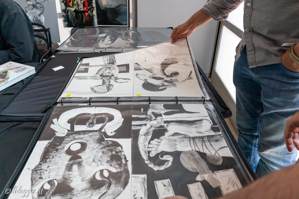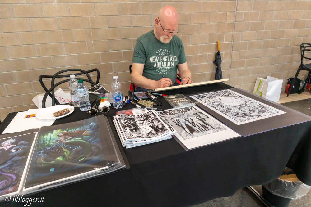 Anche il fumetto italiano era ben rappresentato, con alcuni tra i maestri indiscussi di questa arte, quali i leggendari Paolo Eleuteri Serpieri, Giorgio Cavazzano, Milo Manara, Tanino Liberatore e Giorgio Cavazzano, accompagnati da alcuni dei principali artisti “Marvel/DC made in Italy” quali Simone Bianchi, Gabriele Dell’Otto, Riccardo Federici, Sara Pichelli, e poi Emanuela Lupacchino, Matteo Scalera, Stefano Gaudiano (gentilissimo!), Emilio Laiso, Enrico Marini