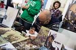 Molto vitale anche lo stand Inkiostro, tra birra a tema e ospiti prestigiosi. Glenn Fabry, illustratore straordinario e copertinista di Preacher, è stato sommerso di richieste per il suo art-book con white cover personalizzata, nonostante il prezzo del volume non fosse propriamente a buon mercato (100 € se non ricordo male). Stessa cosa per Giorgio Santucci e Adriano De Vincentiis: anche loro impegnati a personalizzare quante più white cover possibile. Tra i tanti volumi presentati quelli che mi hanno colpito di più sono stati Hangar 66 di Max Bertolini e Charles Manson – Figlio dell’uomo di Andrea Cavaletto e Giuseppe Candita.