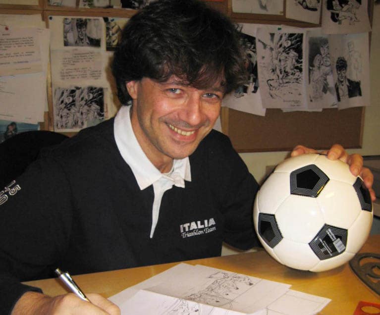 Il mio incontro con Giovetti avvenne mentre frequentavo la seconda media e giocavo nella squadra di calcio dell’oratorio della mia Parrocchia. Lui, già molto conosciuto perché abitava nella mia zona, stava realizzando il Manuale del Giovane Calciatore e la mia squadra, con l’approvazione dell’allenatore e il mitico Presidente Don Giorgio, era la perfetta situazione “test” in cui sperimentare attrezzi calcistici e palloni inventati e brevettati da lui stesso, per migliorare le capacità tecniche dei piccoli calciatori. Così passammo un intero campionato ad allenarci con sfere molto più piccole delle regolamentari, perché solo così la sensibilità del piede calciante veniva sviluppata. Fu un periodo magico. Facemmo un ottima figura e in classifica finimmo secondi. Nella nostra squadra c’era tanto entusiasmo e l’essere pionieri di qualcosa di nuovo ci faceva sognare, come tutti i ragazzini, di poter diventare da grandi, giocatori professionisti (qualcuno lo diventò anche). Poi un giorno, andandolo a trovare nel suo studio con tutta la squadra al seguito, scoprii quale lavoro faceva… non era solo un ex calciatore di Serie A e il disegnatore della Gazzetta, che inventava cose dedicate al calcio, disegnava fumetti! Non capii più nulla. Dunque il lavoro più bello del mondo esisteva ed era lì davanti a me!