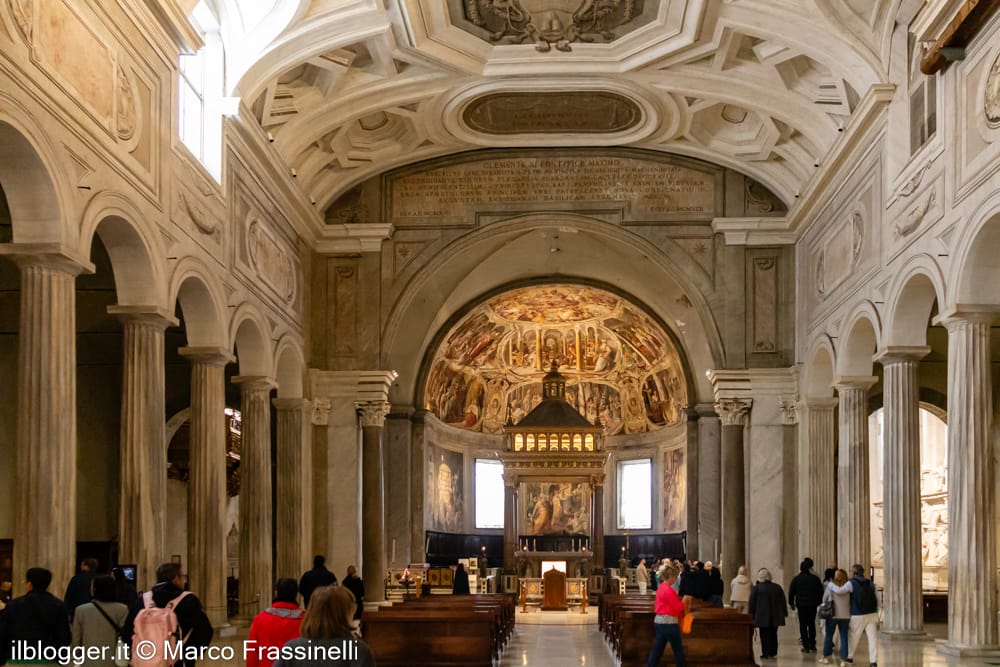 Altri 5 minuti a piedi e arriviamo alla Basilica di San Clemente al Laterano. L’interno presenta splendidi affreschi e mosaici, ma la peculiarità principale di questa basilica è la sua stratificazione: sotto l’attuale basilica medievale, infatti, c’è una basilica paleocristiana e sotto ancora ci sono un antico magazzino e un tempio dedicato a Mitra.