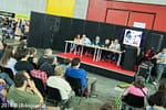 L’ingresso si è rivelato un po’ problematico. Il cancello permetteva l’ingresso di poche persone alla volta e questo, sommato ai controlli di biglietti e degli zaini, ha portato la fila di ingresso ad allungarsi moltissimo. Molti quindi sono entrati ben dopo l’orario di apertura della manifestazione, pur essendo arrivati con largo anticipo. Strano inoltre che per entrare nel padiglione, una volta superati i controlli, fosse necessario “circumnavigarlo” ed entrare dalla parte opposta.
